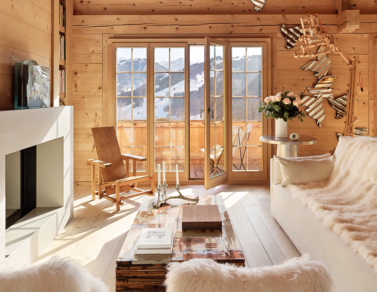 Несмотря на то, что виды из окон этого традиционного швейцарского шале просто изумительные, и всё остальное, включая интерьеры, в таком месте отходит на второй план, дизайнер Maria Ousseimi смогла создать изысканное и в то же время уютное пространство для эстетического отдыха его хозяев. Как и полагает альпийскому интерьеру, натуральное дерево доминирует в отделке, в то же время светля современная мебель и декор, а также предметы искусства и экзотические принты делают этот дом уникальным и эффектным. Давайте же рассмотрим всё в деталях!