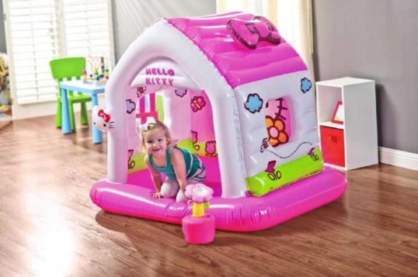 Если говорить именно об игровых домиках для помещений, то они в основном представлены изделиями из пластика (именно домики) или ткани (это скорее игровые палатки). Есть еще не очень распространенный вид — надувные из полимерной пленки. Для малышей до 4-5 лет неплохой вариант: и тепло (играет не на полу) и безопасно.