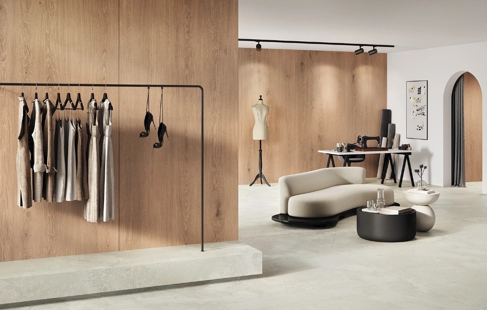 Керамогранит большого размера идеально подходит для кухни, где важны износостойкость и простота ухода. Его можно использовать как напольное покрытие, а также для создания фартука или облицовки стен. Благодаря минимальному количеству швов поверхность становится более гигиеничной и удобной в уборке. Для кухни популярны варианты с имитацией бетона, дерева или камня — они придают помещению современный или эко-стиль. Большие плиты можно комбинировать с деревянными фасадами и металлическими элементами, создавая гармоничный и функциональный интерьер.