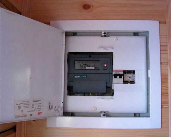 В частном доме тоже несколько вариантов. Если столб стоит во дворе, можно счетчик разместить на столбе, но лучше — в помещении. Если по требованиям энегроснабжающей организации он должен находится на улице, ставят его на лицевой стороне дома в герметичном боксе. Автоматы, идущие к группам потребителей (различным устройствам) монтируются в другом боксе в помещении. Также одно из требований при монтаже электропроводки в частном доме: провода должны просматриваться визуально.