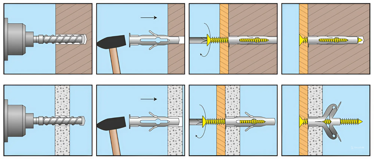 Монтаж начинается с подготовки: очистка поверхности, разметка отверстий. Инструменты: дрель для сверления, отвертка или гаечный ключ для затяжки. Шаги: сверление отверстия (диаметр на 0,5 мм меньше метиза), вставка крепежа, затяжка с моментом (не перетягивать, чтобы не сорвать резьбу). Для бетона — предварительное сверление с дюбелем; для дерева — прямое вкручивание. Применяйте смазку для легкости. В строительстве следуйте нормам СНиП: расстояние между крепежами не менее 3–5 диаметров. Автоматизация: пневматические пистолеты для гвоздей ускоряют процесс. Ошибки: неправильный угол — ведет к ослаблению.