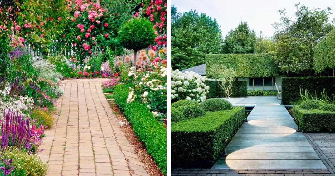 - Классический сад. Чёткие линии, симметрия, ухоженные газоны и аккуратные бордюры.