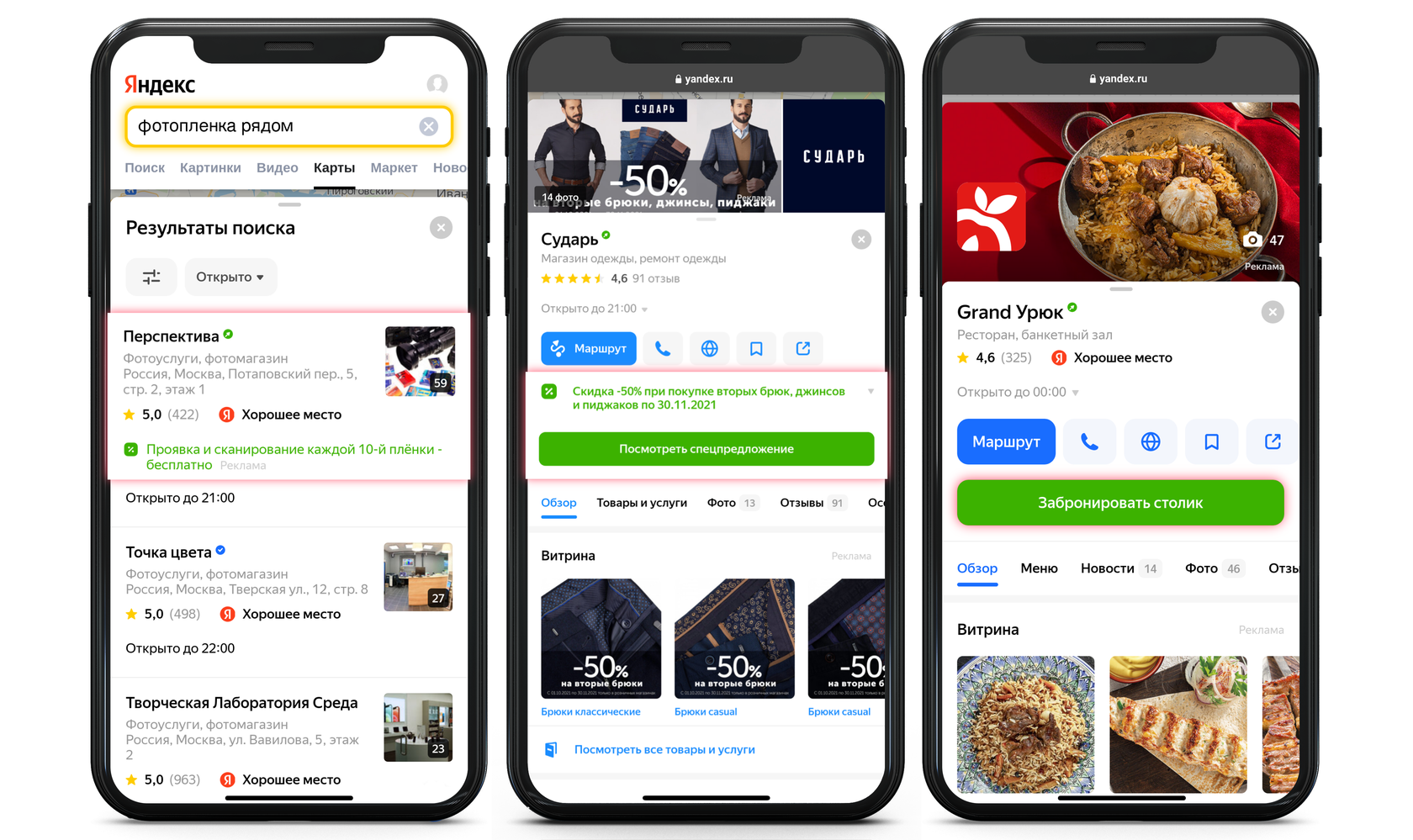 - Визуал: Качественные фото интерьера, экстерьера, товаров или примеров работ повышают кликабельность (CTR). Пользователи любят глазами.