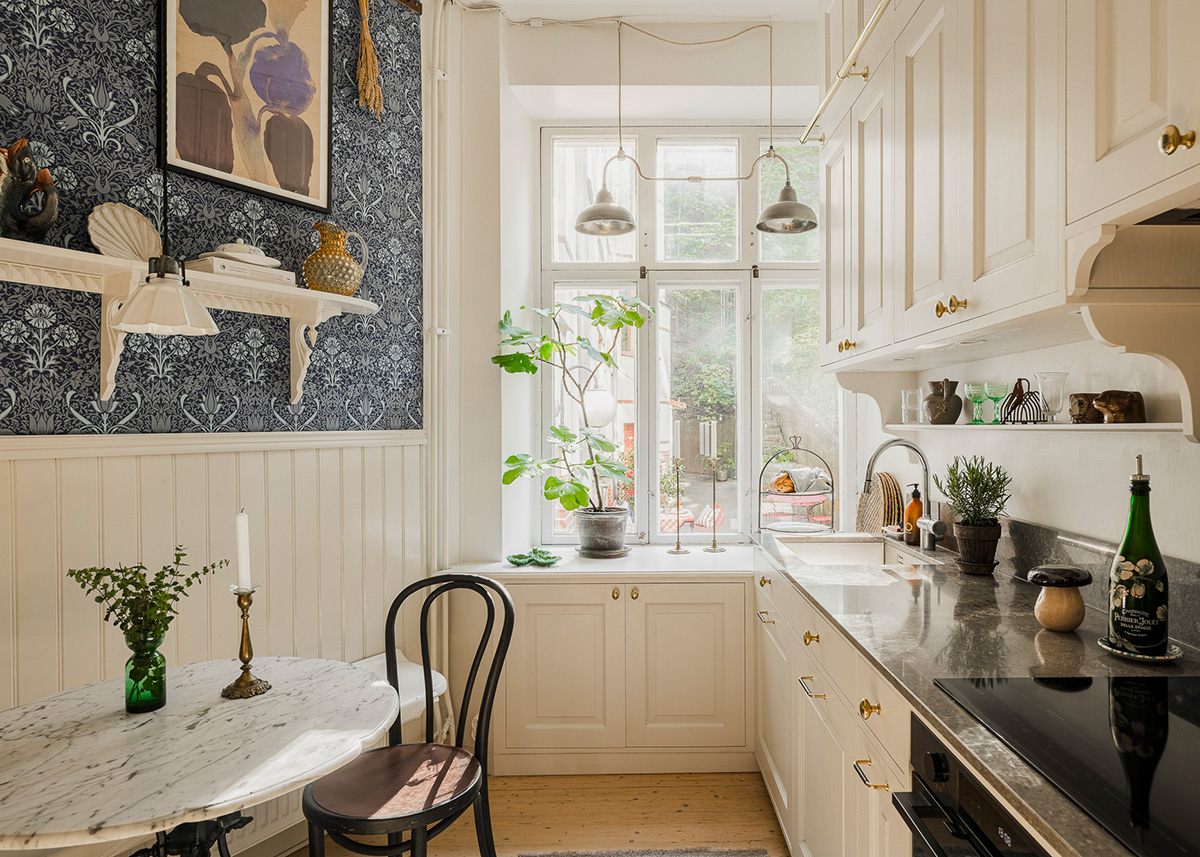 Когда живёшь в центре, но душа тянется к спокойному очарованию загородной жизни — в интерьерах этой квартиры в историческом доме в Гётеборге дизайнеры прекрасным образом интегрировали нотки деревенского стиля в элегантное пространство. Можно начать с кухни — здесь прелестные цветочные обои украшают стены на ряду с вагонкой и открытыми полками. В гостиной в дополнение к обычной скандинавской мебели в стиле ИКЕА дизайнеры использовали винтажный буфет и изящная кушетка. Ну и наконец спальня — здесь также не обошлось без состаренных предметов мебели и кантри ноток. Enjoy!