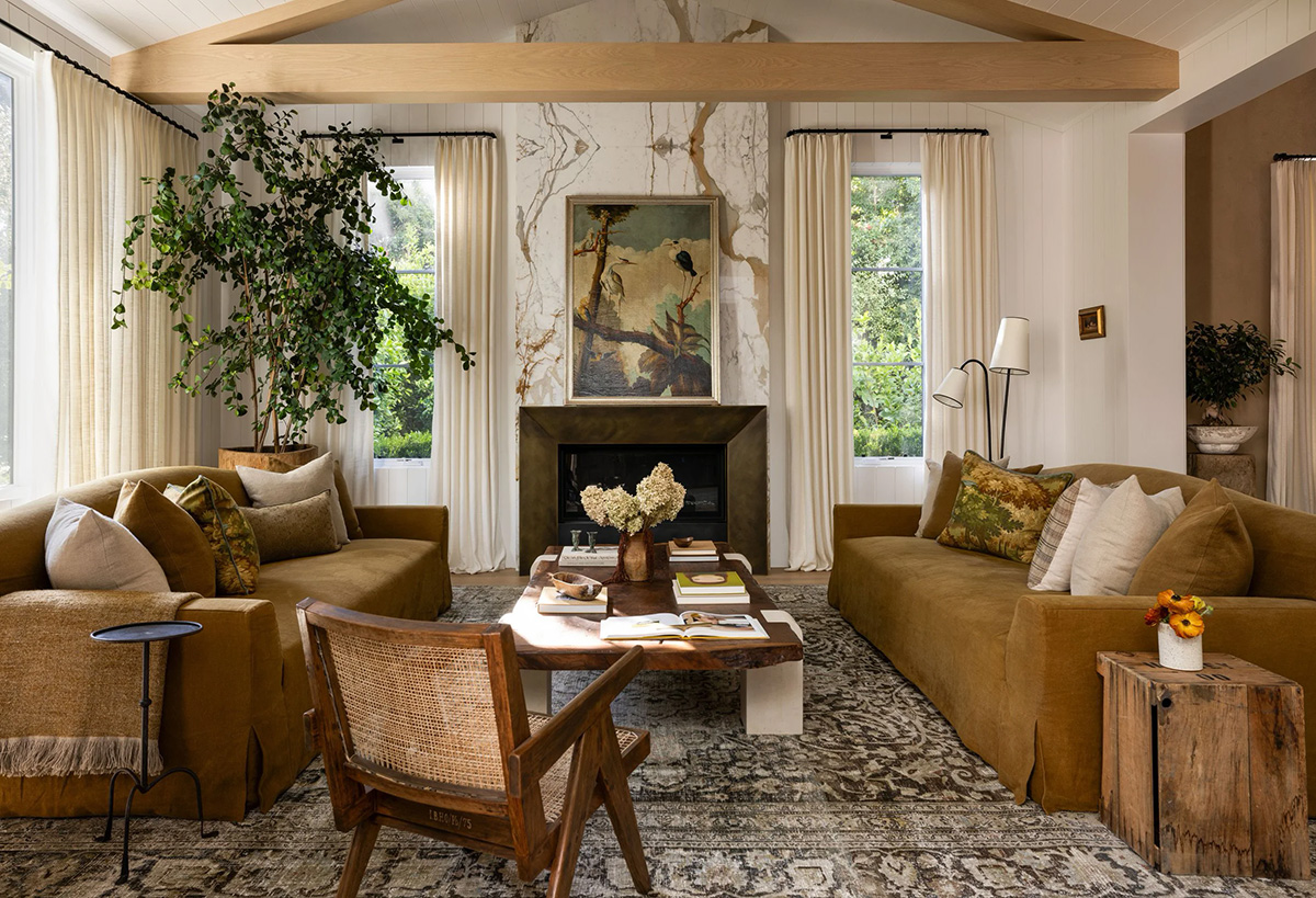 Когда интерьер создан под влиянием природы, это не обязательно простой деревенский стиль с грубыми деревянными поверхностями. Этот дом в Лос-Анджелесе демонстрирует замечательный пример очень изысканного и стильного дизайна, построенного на натуральных материалах и землистых оттенках. Студия MTN нашла прекрасный баланс между несовершенной красотой натурального дерева и модными современными деталями, такими как латунный камин, мрамор и дизайнерские предметы освещения. Получилось уютно и со вкусом!