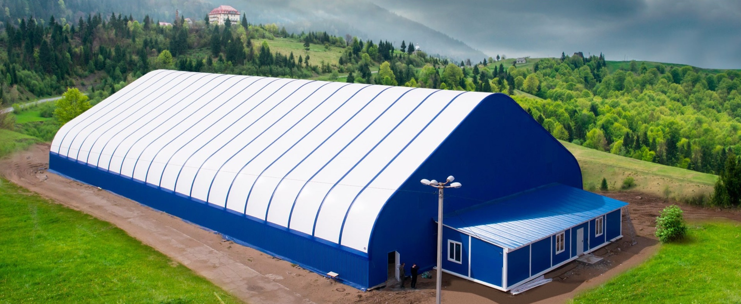 • Арочные ангары: Самый распространенный тип тентовых ангаров, отличающийся полукруглой формой. Обеспечивают оптимальное соотношение прочности и ветроустойчивости.