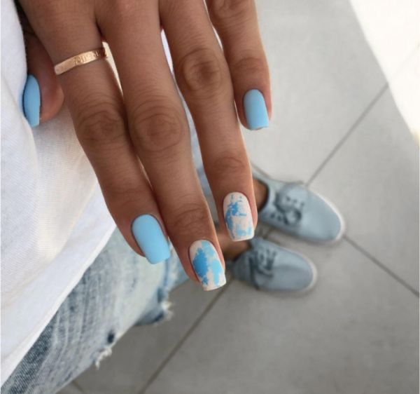 Популярные оттенки голубого для летнего маникюра