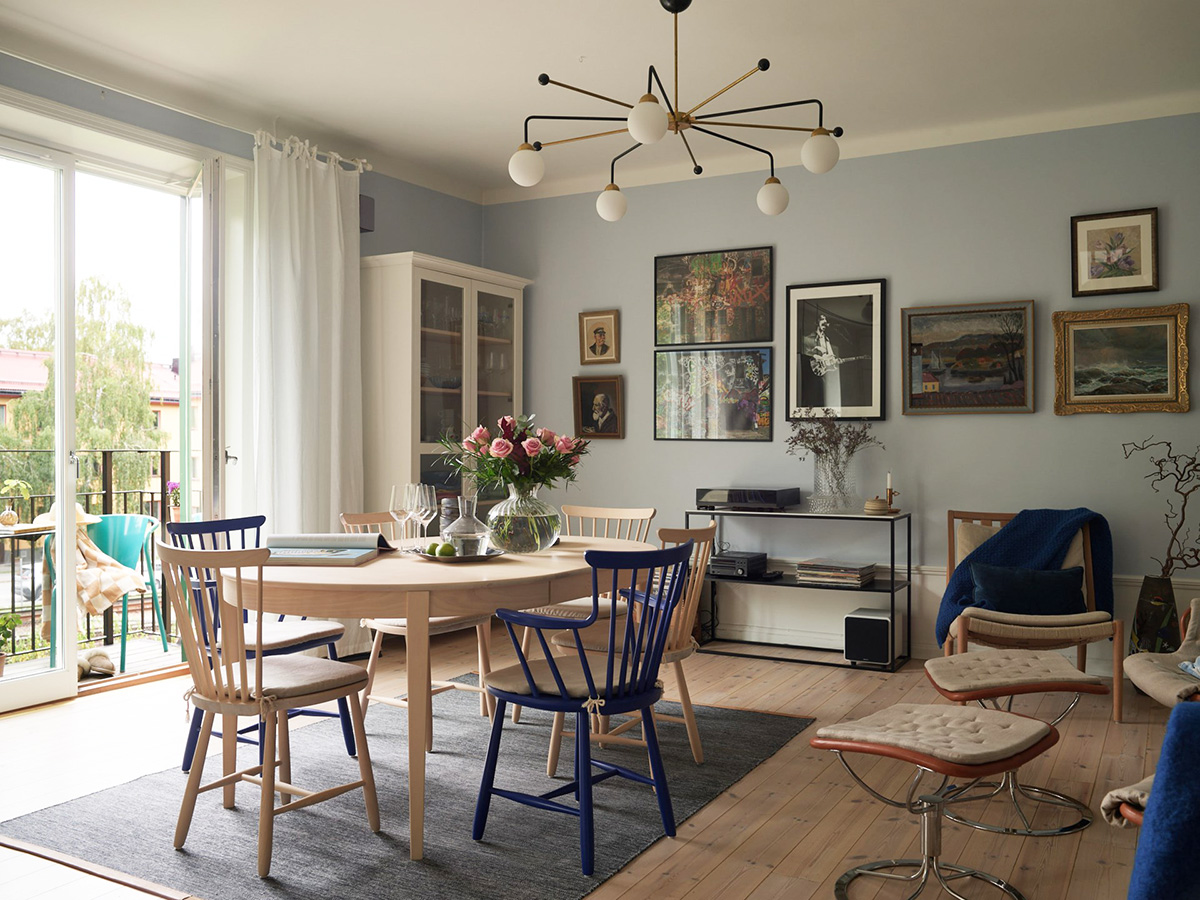 Такие квартиры покупают шведы, у которых недостаточно денег для полноценного загородного коттеджа — здесь также очень хорошо чувствуется атмосфера загородной жизни. Дом находится на тихой зеленой окраине города, где нет шумных автострад и природа находится на расстоянии вытянутой реки. Жилая площадь удобно распределена на двух этажах, которые соединяет деревянная белая лестница, а в декоре чувствуются душевные нотки деревенского стиля. Enjoy!